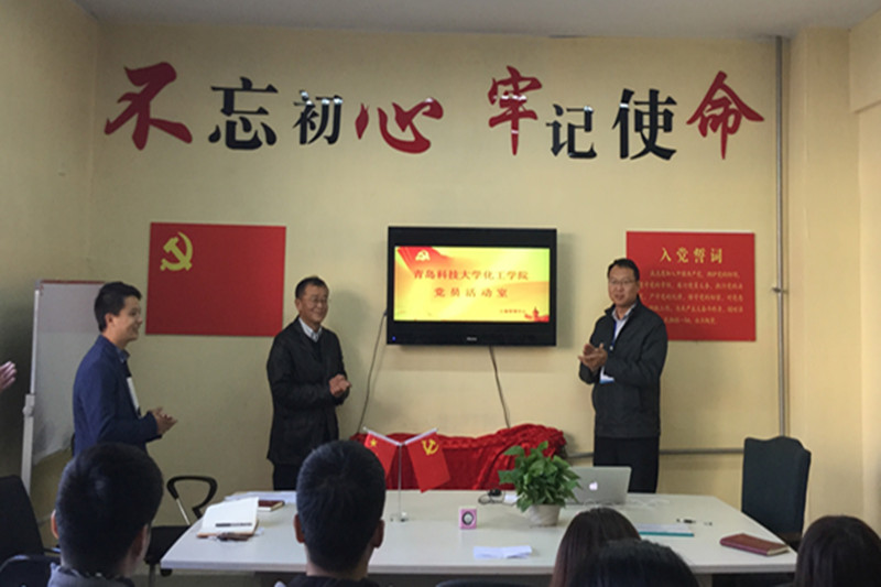11月10日下午,化工学院“先锋党苑”学生党员活动室揭牌仪式在四方校区慧园乙楼二楼举行。校学生处副处长贺炜、公寓服务中心董刚,化工学院党总支书记钱翌、副书记孙明媚,分团委全体辅导员,各年级党员代表参加揭牌仪式。